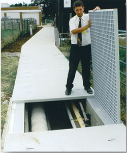 Kullanım yerine göre CTP Izgaraların üzerine yine kaymaz yüzeyli CTP Kompozit plaka lamine edilerek CTP ızgaranın mukavemeti ve yük taşıma kapasitesi artırılarak istenilen ebatta üretilen kompozit rögar kapaklar1 ;